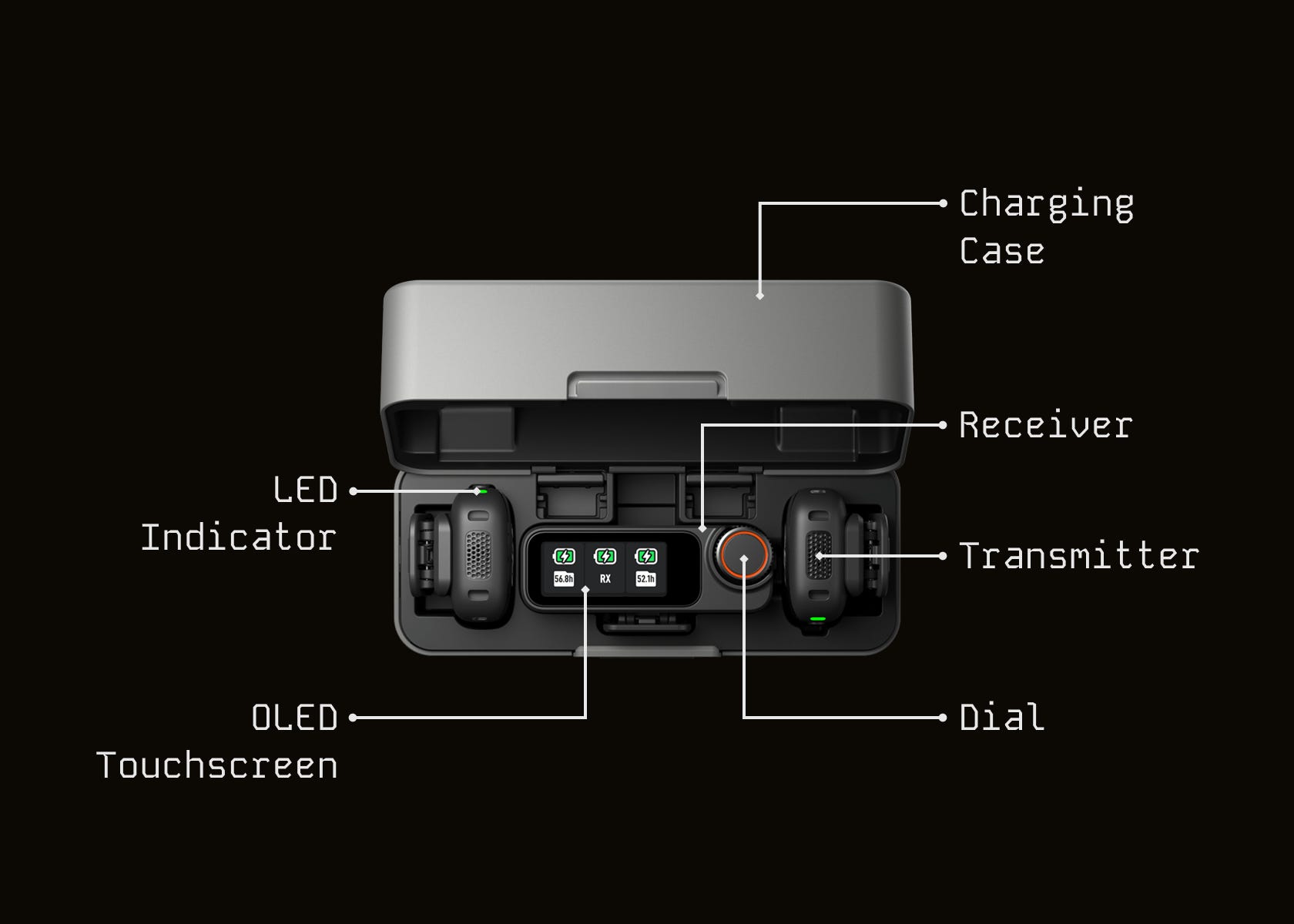 Usage: Drop transmitters and receiver in the case—devices power up, pair, and recharge automatically.